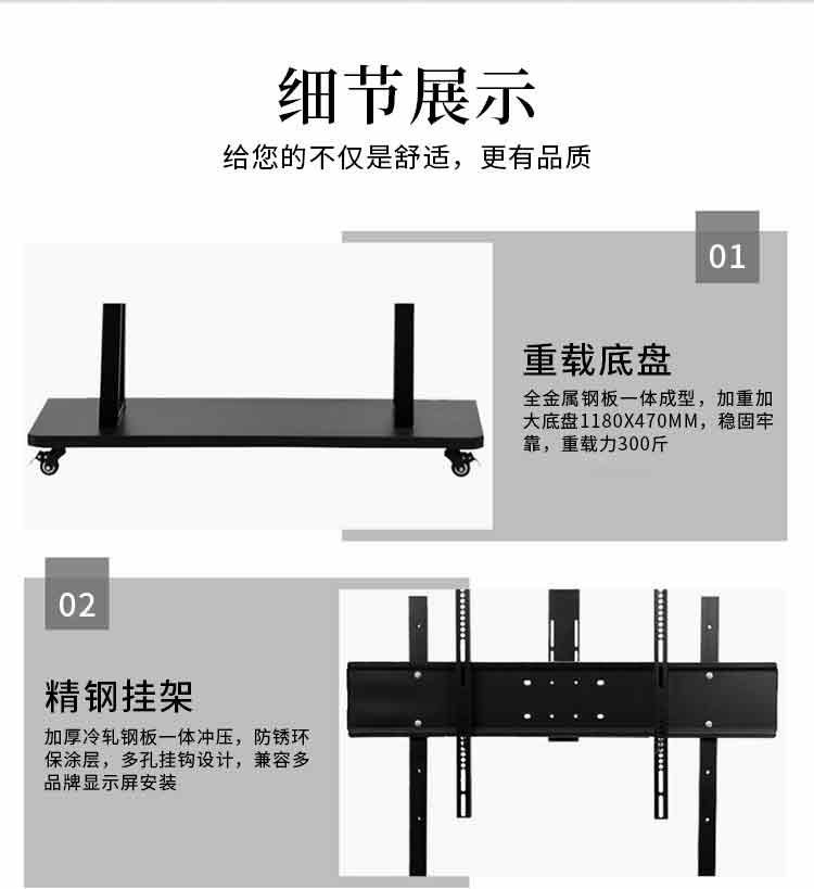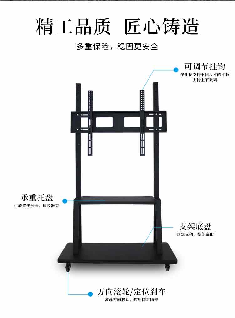 黑色教學會議移動支架專用液晶電視、廣告機、觸控一體機、電子白板、教學會議等,高低升降,隨意調節。