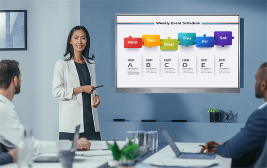 從操作上看,會議一體機是與平板相似,都是一種觸控設備。我們一般在使用平板時是近距離觀看的,屏幕小,而且內容更容易聚焦。而會議一體機是一般在會議廳使用,我們的觀看距離更加遠了,不過還好一體機的屏幕尺寸大,可展示的內容更多了。