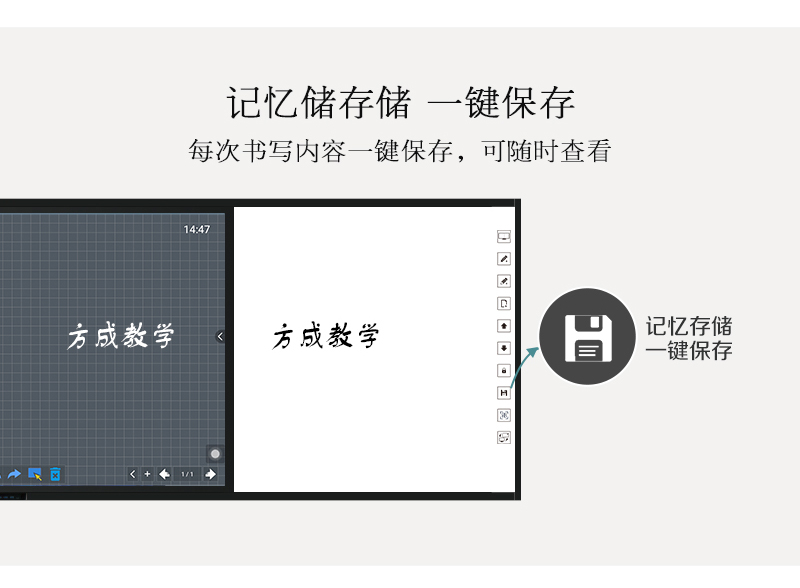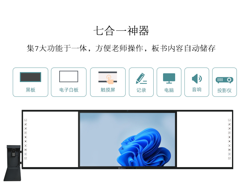 板書教學記憶一體機-記錄板書內容、再現課堂過程、轉化教學資源,板書教學記憶一體機集六大產品于一機,在不改變老師板書習慣的前提下,實現傳統教學與多媒體設備的智慧融合,設定了有板書記憶、板書同步顯示、板書自動分享等多樣化功能,每一個功能的實現都賦予了自己的使命。