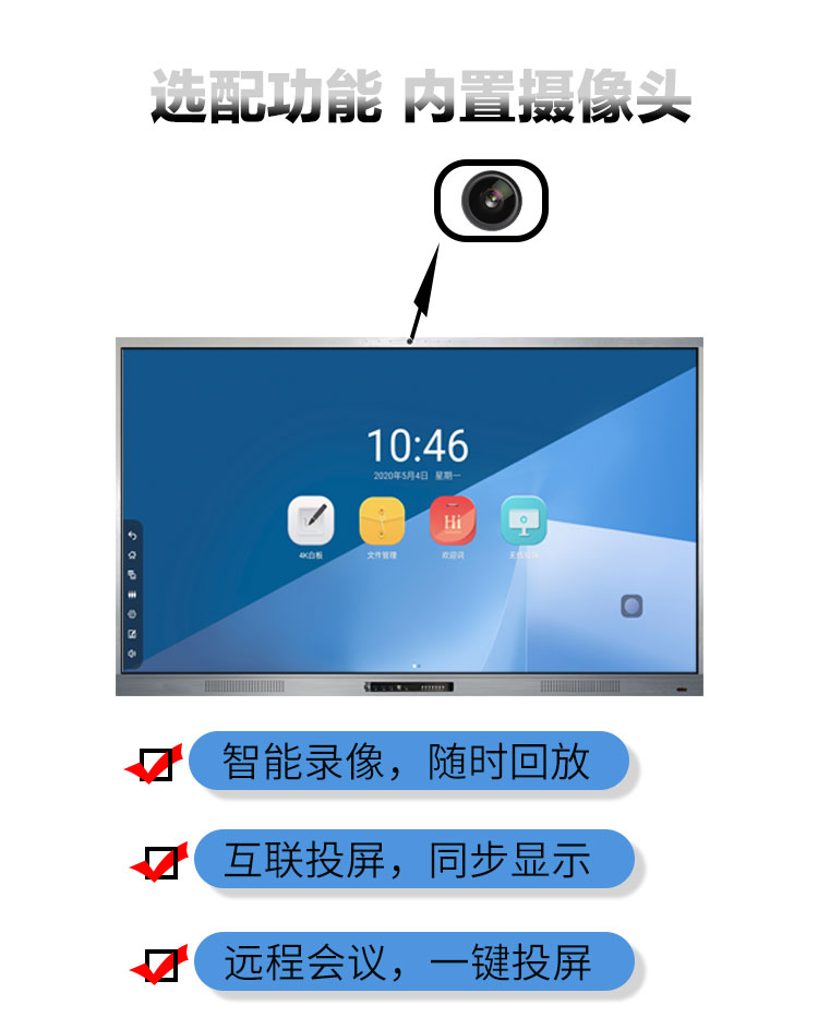 5、時尚精簡外觀,會議一鍵啟動(這條特點針對于S款不帶推拉門的會議平板一體機,主要應(yīng)用在會議場所用)